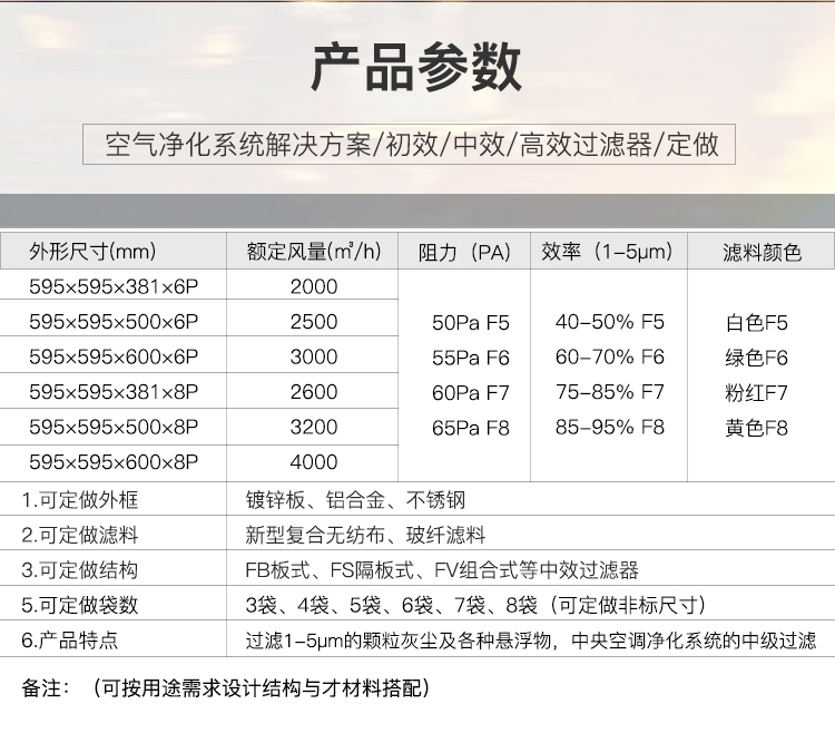注:中效袋式過濾器|袋式中效過濾器可根據(jù)客戶實(shí)際需求非標(biāo)訂制! |