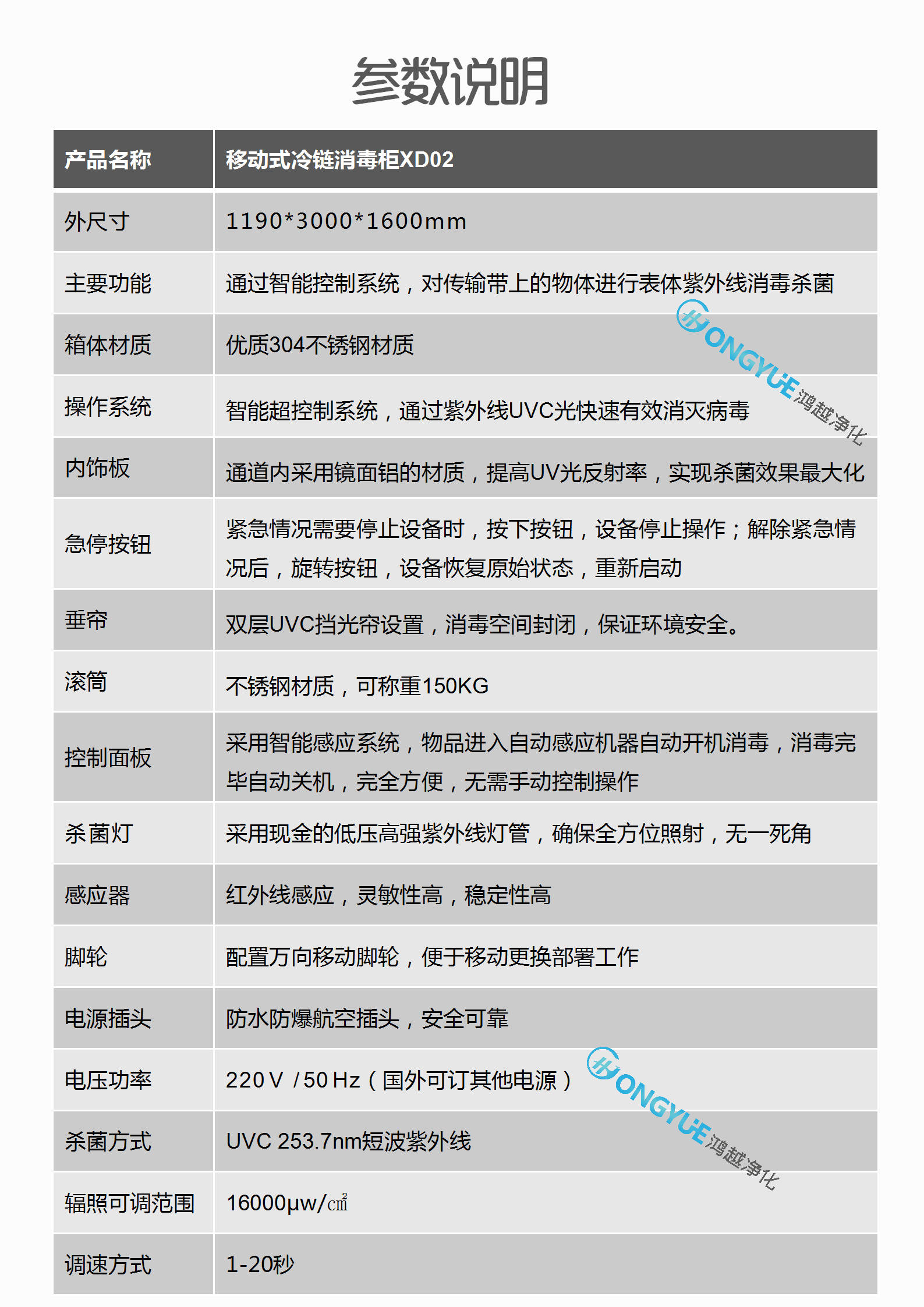 智能移動式冷鏈消毒柜XDG-YD02A參數(shù)說明: