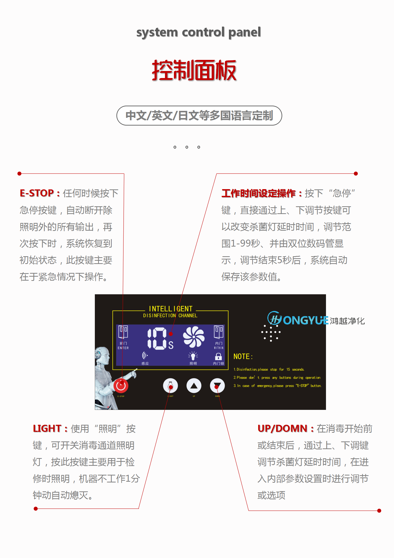 7.控制:采用智能感應(yīng)系統(tǒng),物品進入自動感應(yīng)機器自動開機消毒,消毒完畢自動關(guān)機 完全方便 無需手動控制操作;