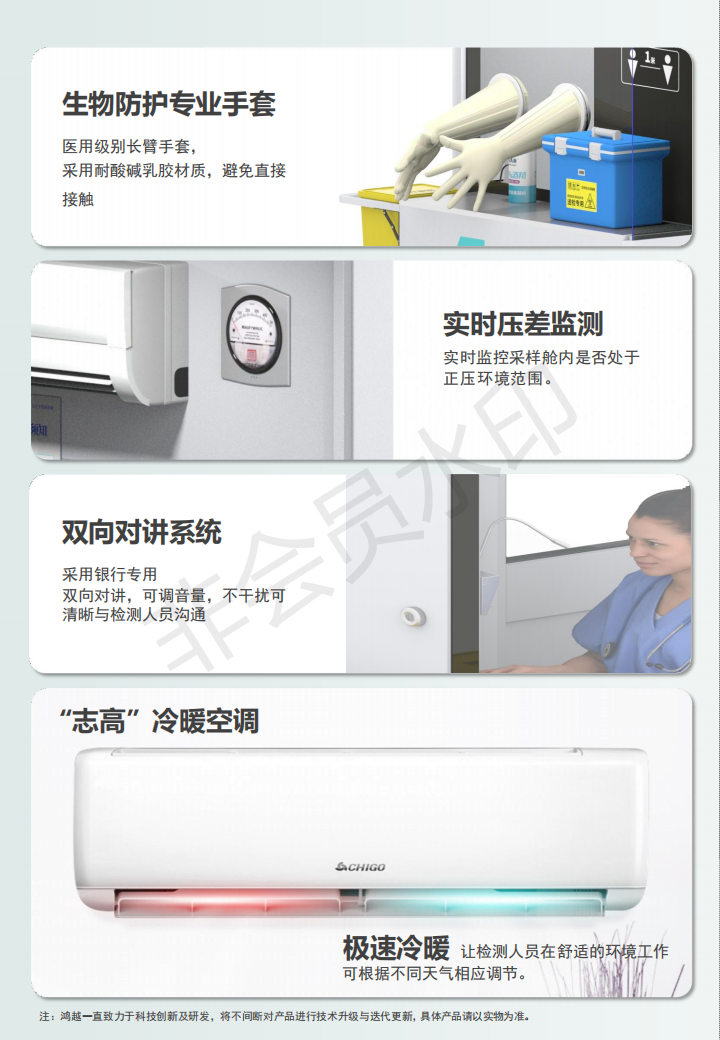 6.恒溫系統(tǒng):采用志高空調(diào),主要用于室內(nèi)維持舒適溫度,讓采集人員能夠有更好的精力更舒適地進(jìn)行工作。