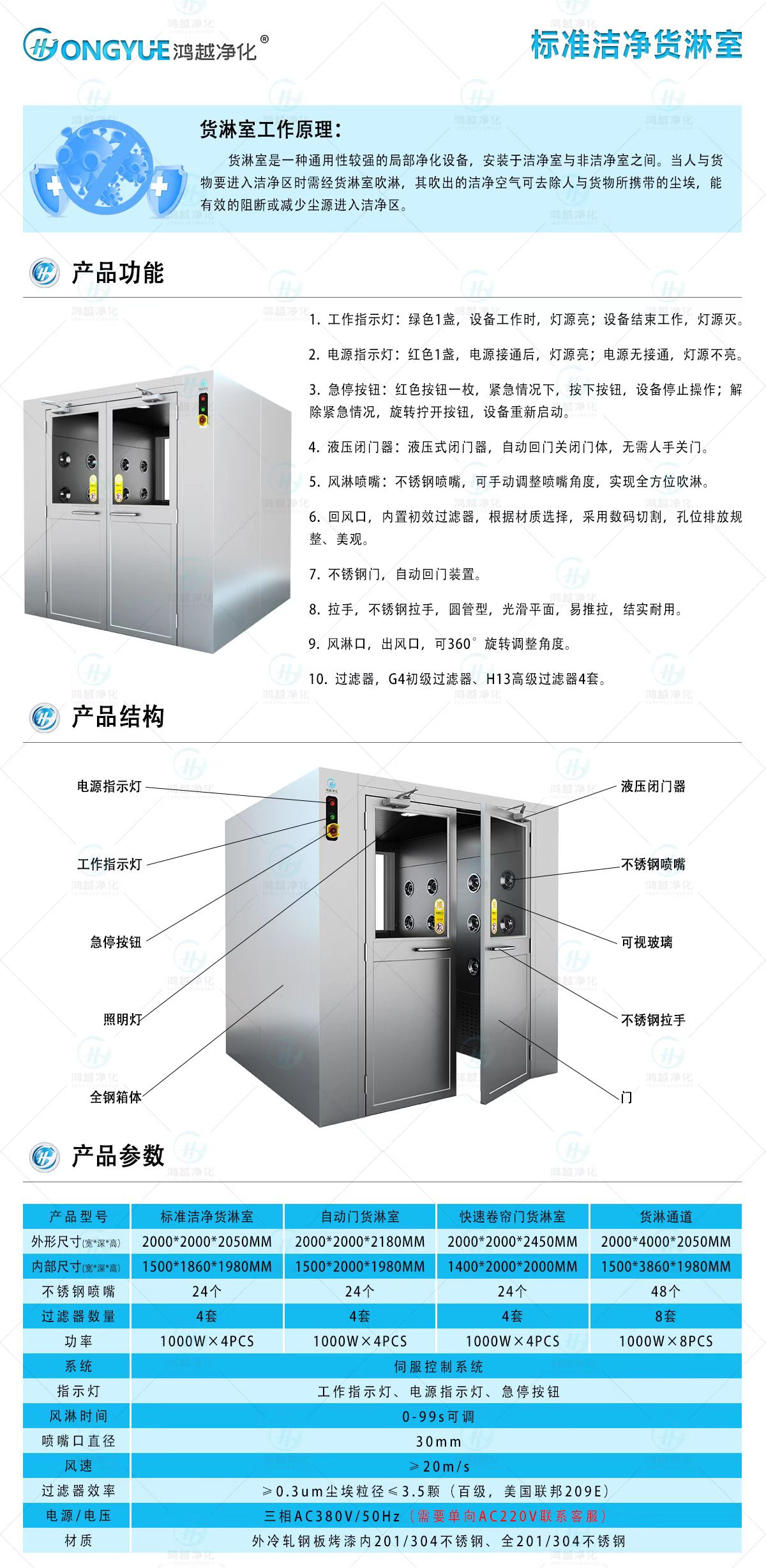 貨淋室是貨物進(jìn)出潔凈室所必需的通道并同時(shí)起到氣閘室密閉潔凈室的作用。
