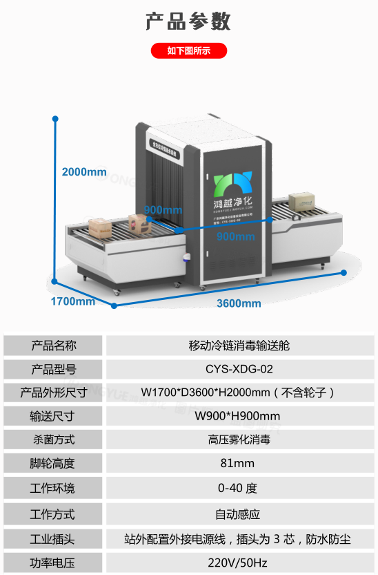 鴻越智能移動式冷鏈消毒柜XDG-02參數說明: