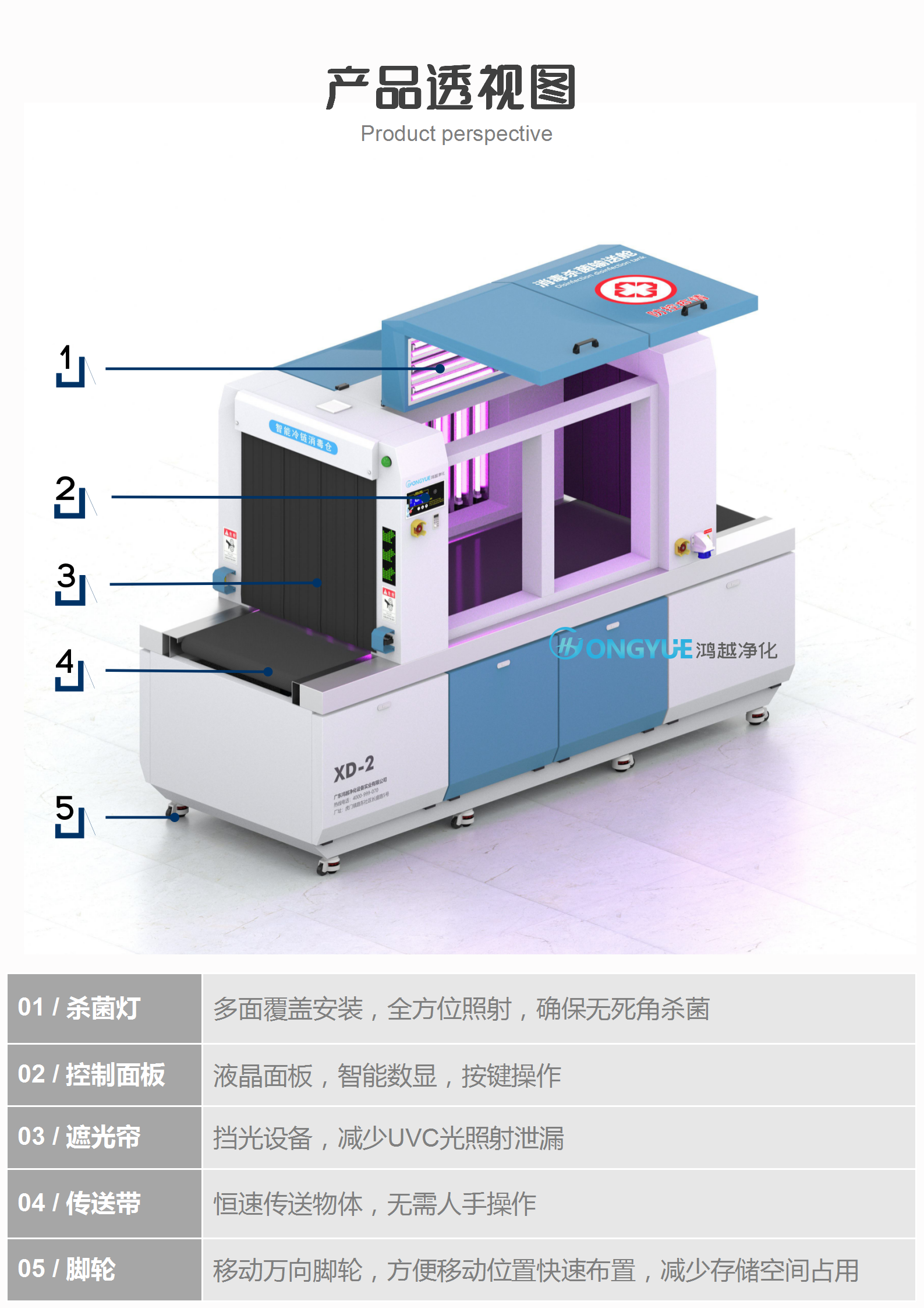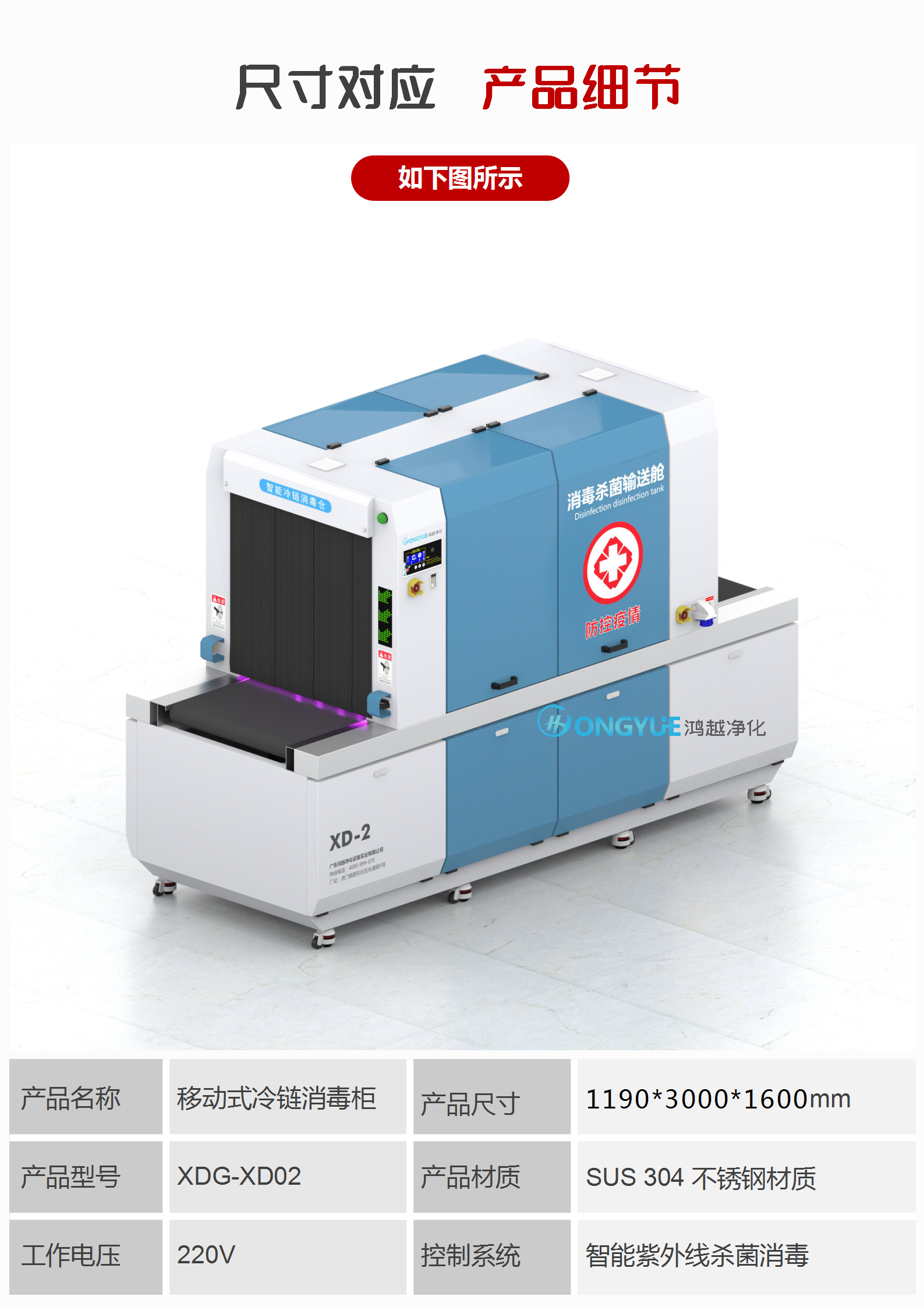 智能移動式冷鏈消毒柜XDG-YD02A參數(shù)說明:
