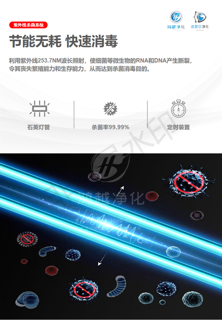 3.消毒系統(tǒng):醫(yī)用級(jí)UVC紫外殺菌燈,采用253.7nm波長的紫外線,全方位照射,確保無死角殺菌。